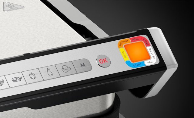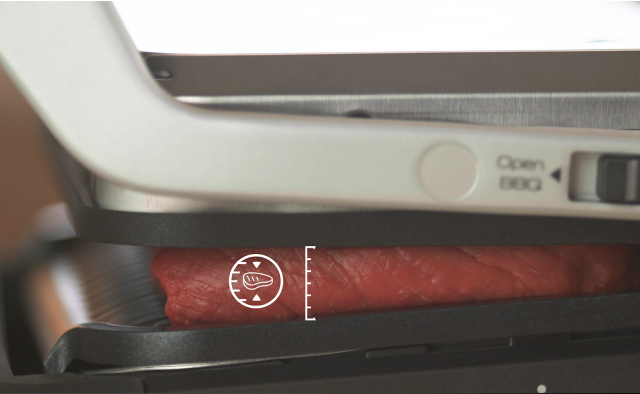 Гриль автоматически определит толщину ингредиентов с точностью до 1 мм и задаст настройки времени приготовления и температуры для достижения желаемой степени прожарки.