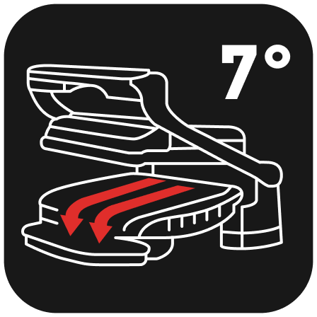 Пластины гриля расположены под углом 7°, поэтому стейк именно жарится, а не варится в собственном соку, как бывает при использовании сковород.
