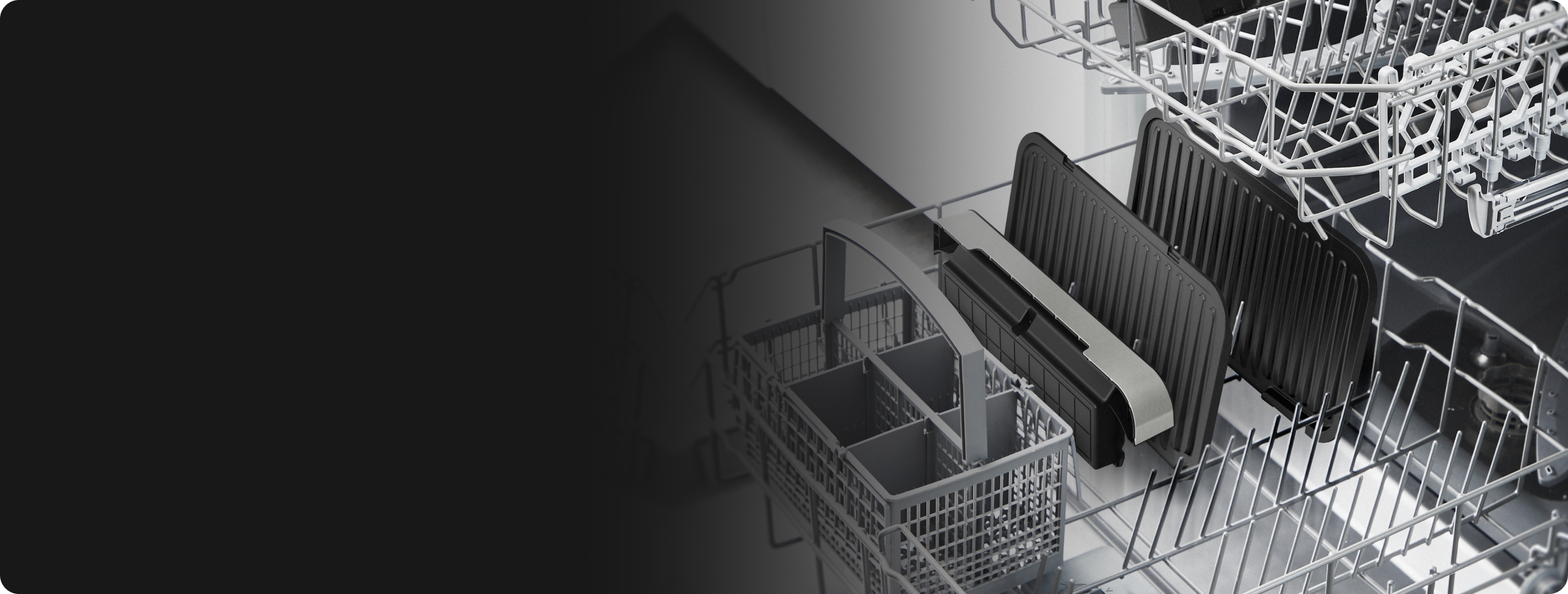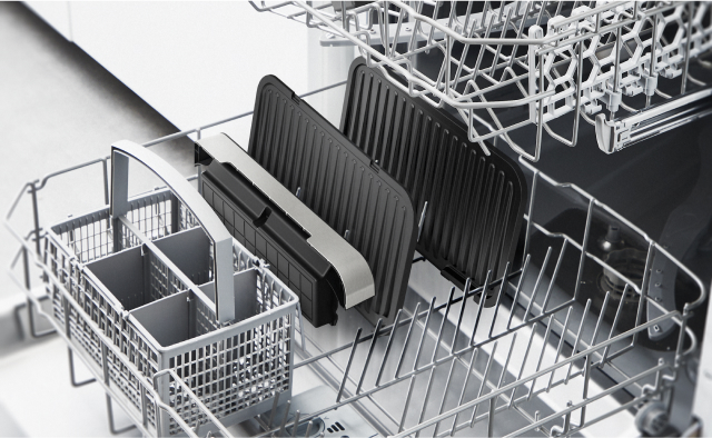 Панели для жарки, поддон для лишнего жира и насадку для запекания можно мыть в посудомоечной машине.